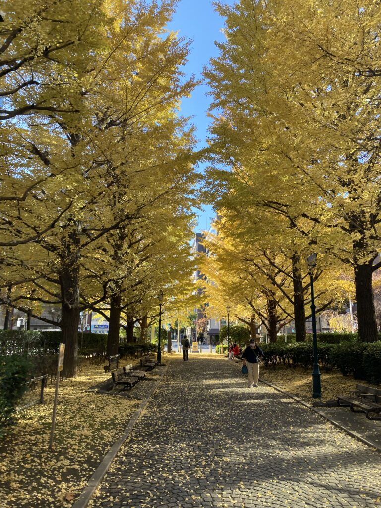 ここは秋になると銀杏が綺麗です。それほど道は長くはないですが幅が狭いので黄金のトンネルみたいで気持ちいいです。写真を撮ってる人も多いです。